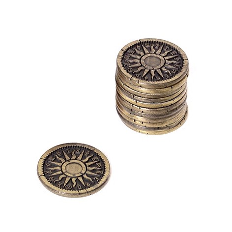 W tej kategorii znajdziesz monety metalowe związane z konkretnymi motywami lub tytułami gier. Zestawy zawierają produkty imitujące złoto (pokryte warstwą mosiądzu), srebro (warstwą niklu) lub miedź (warstwą miedzi). Ich wzory nawiązują do gier postapo, fantasy, steampunkowych, utrzymanych w klimacie średniowiecza, starożytności, kosmosu, oraz powieści Lovecrafta.