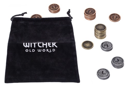Wykonany ze stopów cynku zestaw 3 cudownych, ciężkich monet które zostały ozdobione symbolami znanymi ze świata Wiedźmina. Złoto to złoto, mniejsze, większe, średnie, wszystko jedno. Proporcje są umowne, a granice zatarte. Nie byliśmy świątobliwym pustelnikiem, nie same monety z czystym kruszcem wybijaliśmy. Lecz jeżeli mamy wybierać pomiędzy jednym złotem a drugim, wolimy nie wybierać wcale. Weźmiemy wszystkie. Oreny, floreny, korony, dukaty, marki, talary, koppry i bizanty. Jeśli je posiadasz, bank Vivaldich wita Cię z otwartymi rękoma w każdej z czterech pór roku. Nieważne, że zmieni się światło w Twoich oczach, na Twym koncie wszystko pozostanie nienaruszone. Gwarantujemy tę samą jakość usług od Poviss do Vicovaro. A żeby znaleźć potwierdzenie krasnoludzkich słów czy obietnic, zapytaj naszych klientów – powiedzą to samo, co my. A jeśli nie masz złota, za drzwi się udaj gołodupcu i idź do roboty, przydaj się na coś królestwu. Chociaż na dworze wiatr okrutny wieje. Zaraza, ależ ulewa. Zbiera się na burzę. I niepokoi nas ten przybysz dziwny, który idzie od północy, od bramy powroźniczej. Pieszo idzie, a objuczonego konia prowadzi za uzdę. Ma na sobie zarzucony czarny płaszcz. Będą kłopoty. Jakaś rzeź się szykuje.