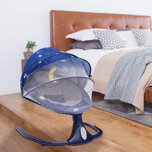- Tkaniny przyjazne dla skóry: Tkanina tego zdalnie sterowanego bujaczka dla niemowląt wykorzystuje wysokiej jakości tkaninę kationową i krystaliczną flanelę, dzięki czemu jest oddychająca, pochłaniająca pot, miękka, delikatna, bezpieczna i bezwonna. Te miękkie i przyjazne dla skóry tkaniny zadbają o skórę dziecka przez długi czas i sprawią, że będzie mu wygodniej.