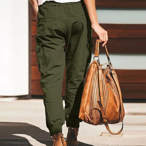 Szare luźne spodnie damskie ze ściągaczem i elastycznym pasem