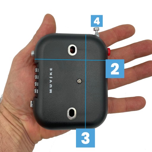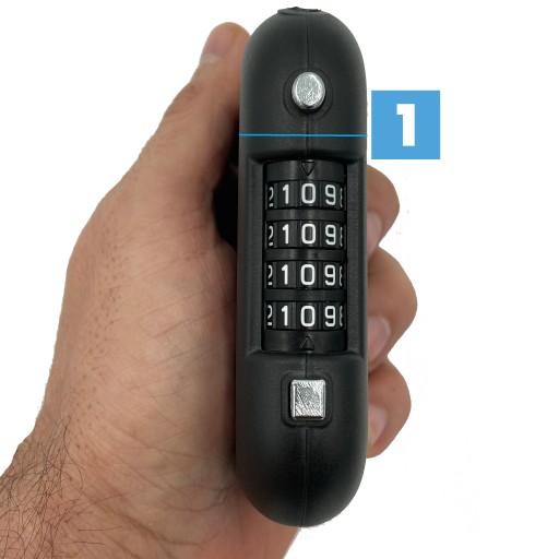 3️⃣ Aby ustawić kombinację: Przesuń w górę kwadratowy przycisk, przytrzymaj go podczas wybierania kombinacji. Puść przycisk, aby ustawić kod