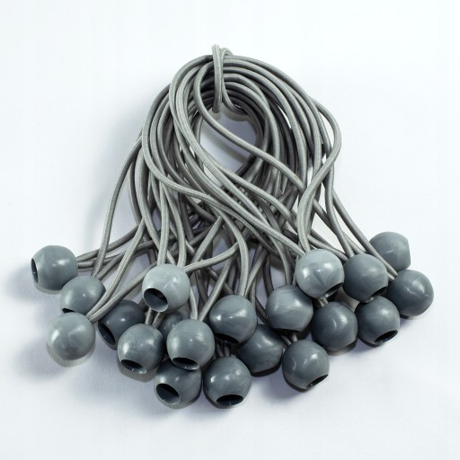 ELASTYCZNA GUMA Z KULKĄ DO MOCOWANIA PLANDEK BANERU NAMIOTU SZARA -20CM 10 SZTUK
