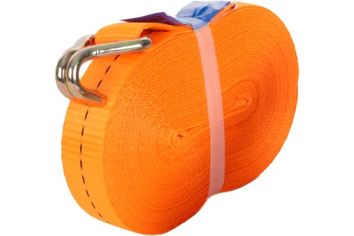 Pas transportowy z napinaczem: 12 m x 25 mm, wytrzymałość 1 tona. Idealny do efektywnego i bezpiecznego przewozu dużych ładunków.