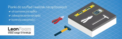 Pianka LeanFoam przeznaczona jest do samodzielnego wykonania wkładu piankowego wewnątrz walizki. Rozwiązanie to umożliwia zarówno bezpieczne przechowywanie przedmiotów oraz narzędzi, jak i bardzo szybką orientację, czy zestaw jest kompletny (brak przedmiotu = pusta kieszonka). Pianka została dopasowana do kształtu walizki dzięki czemu nie pozostały żadne wolne przestrzenie.