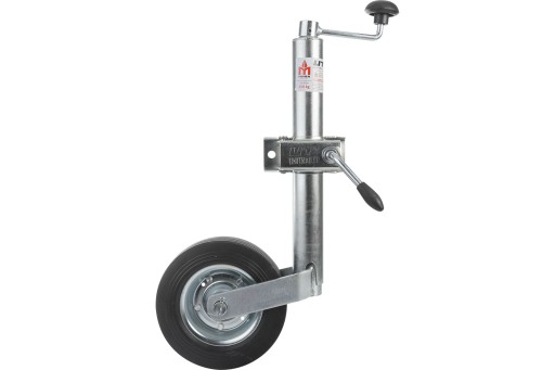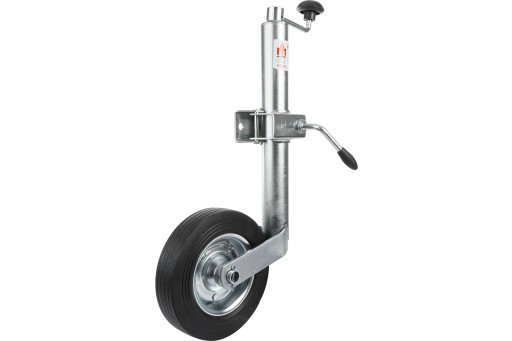 Solidne stalowe koło podporowe z ocynkiem. Wyposażone w łożysko oporowe ułatwiające rozruch i pełną oponę z gumy. Obejma koła podporowego została wyprodukowana z wytrzymałej stali. Wyposażona w docisk śrubowy pozwoli na bezpieczne użytkowanie koła podporowego przyczepy. Do montażu obejmy wystarczą dwie śruby o średnicy 10 mm.