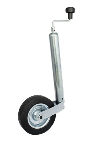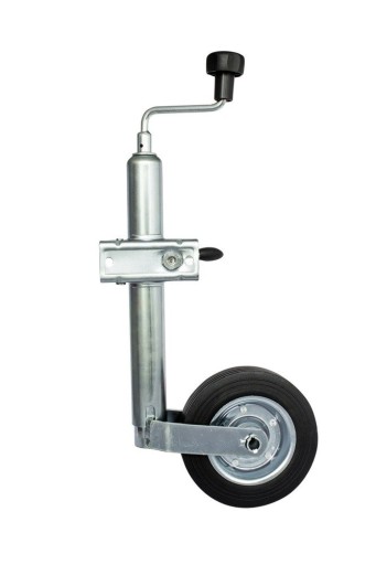 Solidne stalowe koło podporowe z ocynkiem. Wyposażone w łożysko oporowe ułatwiające rozruch i pełną oponę z gumy. Obejma koła podporowego została wyprodukowana z wytrzymałej stali. Wyposażona w docisk śrubowy pozwoli na bezpieczne użytkowanie koła podporowego przyczepy. Do montażu obejmy wystarczą dwie śruby o średnicy 10 mm.