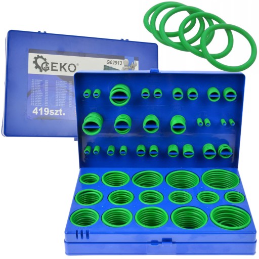 НАБОР УПЛОТНИТЕЛЬНЫХ КОЛЬЦ GEKO - УПЛОТНЕНИЯ КОНДИЦИОНЕРА 419 ШТ. ЗЕЛЕНЫЙ ЧЕМОДАН G02913
