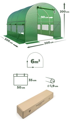 TUNEL OGRODOWY UV-4 SZKLARNIA 3x2m NAMIOT FOLIOWY 7 OKIEN 6m2 + GRATIS