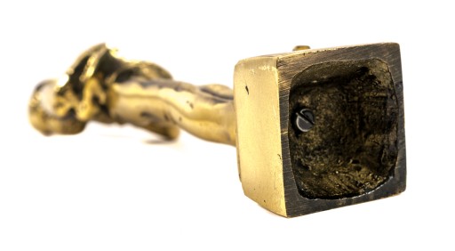 Piękny wyrób ! Utrzymany w antycznym charakterze, przepolerowany w miejscach eksponowanych, ciemniejszy w zakamarkach, proporcje bez zarzutu. Całość składająca się z dwóch elementów: figurki i cokołu, solidnie skręconych ze sobą śrubą.
