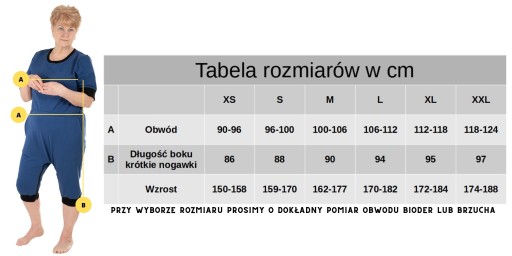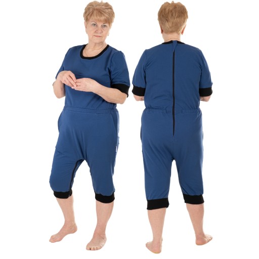 Body dla seniora - krótkie rękawy, krótkie nogawki, zamek w kroku ze ściągaczami z gumą w pasie