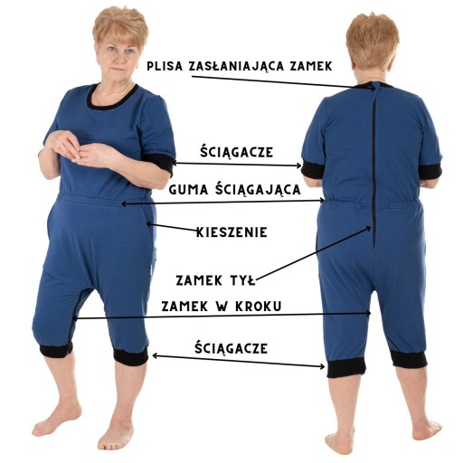 Body, kombinezon - stworzone zostały głównie z myślą o osobach-pacjentach mających skłonności do samodzielnego, notorycznego rozbierania się oraz ściągania pieluchomajtek.