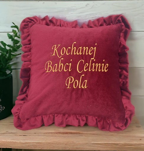 Poduszka może zawierać dowolny napis np Kochanej Mamie, Kochanej Babci ( do pięciu słów cena poduszki nie zmienia się)
