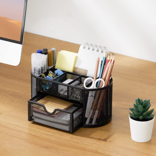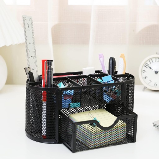 【Wielofunkcyjny】✅️ Organizer biurowy z siatki może być używany do przechowywania długopisów, ołówków, spinaczy biurowych, nożyczek, zszywaczy, notatników, komputerów, telefonów komórkowych, kosmetyków, kluczy i innych małych przedmiotów. Organizer na biurko utrzymuje biurko w czystości i porządku.