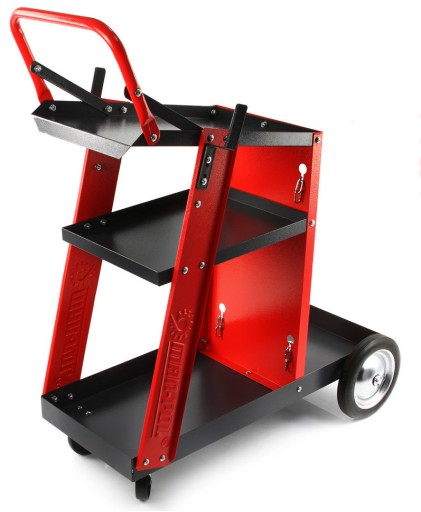 - Może być używany ze wszystkim spawarkami MMA, MIG, TIG. Przy spawaniu z butlą nie musimy jej ręcznie przenosić. Dodatkowe półki pomieszczą potrzebne podczas pracy akcesoria, tak aby były zawsze pod ręką.
