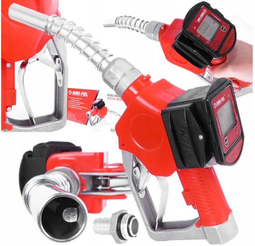 Nowoczesny pistolet do paliwa wyposażony w elektroniczny miernik przepływu jak i nowoczesny system auto-stop pistolet sam odbijja (z dokładnością +/- 0.2%).