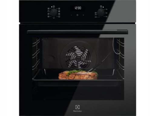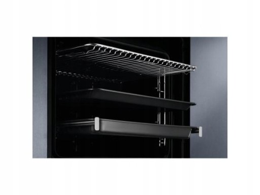 - Pojemność. Bardzo duża pojemność piekarnika pozwala na gotowanie na wielu poziomach jednocześnie oraz swobodne używanie dużych naczyń wewnątrz urządzenia.