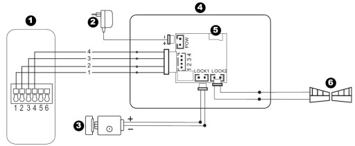 - Napięcie wyjściowe dla rygla elektromagnetycznego: 12 V DC