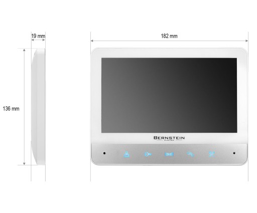 Monitor "Bernstein" VDS-70RU o przekątnej ekranu 7'', posiada wbudowany moduł WiFi umożliwiający obsługę urządzenia za pomocą aplikacji Tuya dostępnej na platformy Android i iOS.