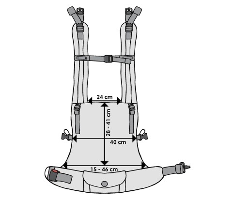 Zakres regulacji pasów nosidełka:
