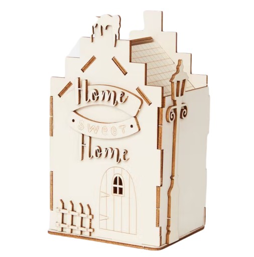 Aby poczuć atmosferę świąt, udekoruj dom najpiękniejszymi ozdobami także będzie jeszcze milej, jeśli wykonasz je samodzielnie! A zatem stwórz swój własny drewniany domek świąteczny przy użyciu tego zestawu. To bardzo proste i nie potrzebujesz kleju. Idealne zajęcie na mroźny zimowy dzień.