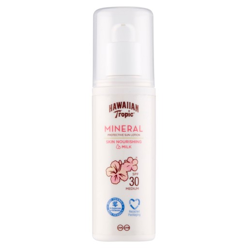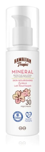 Hawaiian Tropic Mineral Sun Milk, mleczko do opalania w 100% z filtrem mineralnym dla ochrony przed promieniami UVA i UVB.