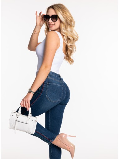 Piękne elastyczne spodnie damskie ze zdobieniami.