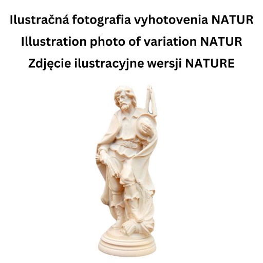 MATERIAŁ: Wszystkie rzeźby w drewnie do rozmiaru 24 "(60 cm) są domyślnie rzeźbione z wybranego drewna klonu górskiego, posągi o rozmiarze 24 (60 cm) lub większe są rzeźbione z drewna lipowego (po łacinie: sacrum lingum), chyba że określono inaczej.