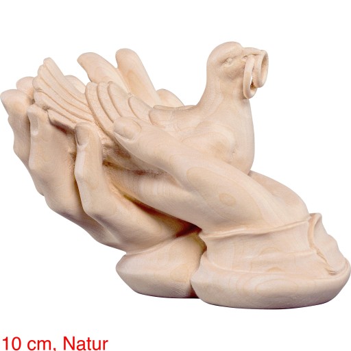 Голубь с обручальными кольцами в защитных руках - 10 см, Natur
