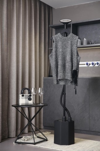 Parownica do ubrań SteamOne EUHG100B. Moc: 1800 W, Wytwarzanie paryt: 40 g/min, Pojemność zbiornika na wodę: 1,8 l, Czas nagrzewania: 60 s, Długość przewodu sieciowego: 2 m, Wyposażenie: wieszak na koszule i spodnie, hak na dyszę, rękawica...