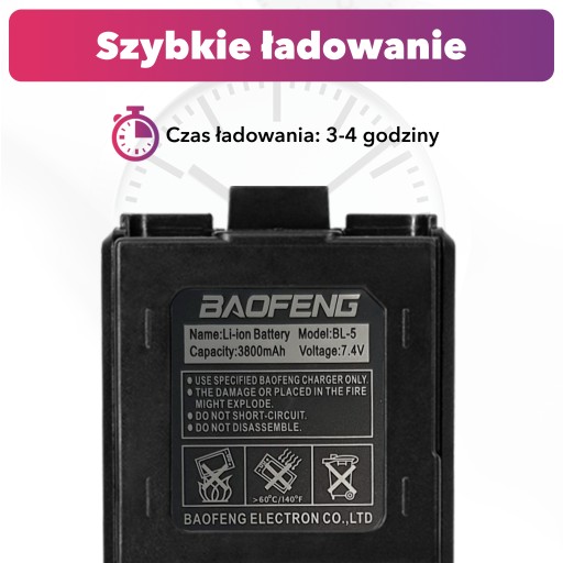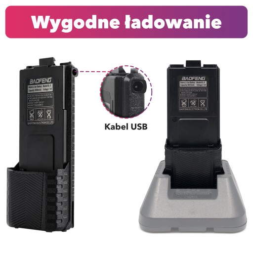 Akumulator 3800 mAh do krótkofalówki Baofeng UV-5R (BL-5L), kabel do ładowania