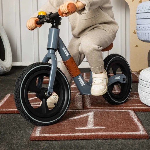 Pompowane, gumowe koła na łożyskach maszynowych zapewniają płynną jazdę, a szeroka kierownica pokryta materiałem antypoślizgowy dodatkowo zwiększa wygodę i bezpieczeństwo dziecka.
