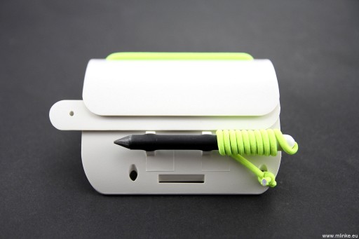 Tabliczka posiada w komplecie rysik oblany w gumę - spójrz na zdjęcie poniżej.