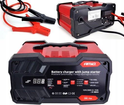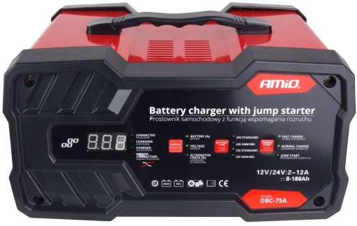 - Prąd ładowania: 12A, zalecany do aku. o poj. 8Ah do 180Ah