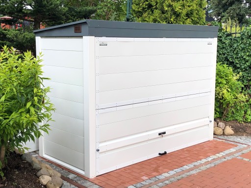 Garaż na motocykl GMP 3 - wersja wypełnień ścian jest taka jak na zdjęciach