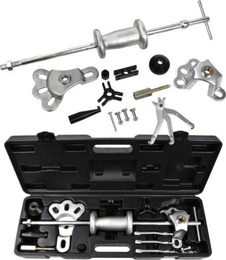Przeznaczony do demontażu piast, kół zębatych, łożysk wewnętrznych oraz zewnętrznych. Całość zestawu wykonana została z wysokogatunkowej stali.
