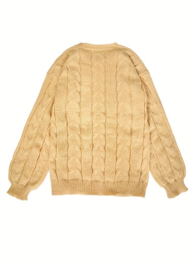 Комплект из двух предметов однотонной вязки: повседневный свитер и юбка с длинными рукавами.