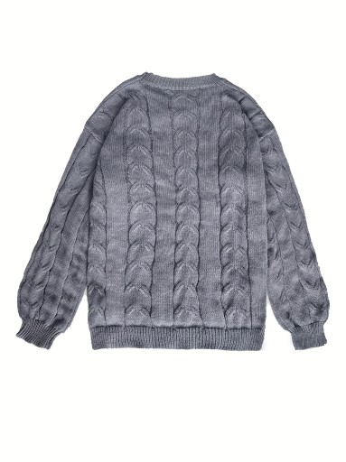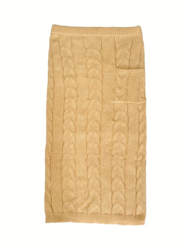 Комплект из двух предметов однотонной вязки: повседневный свитер и юбка с длинными рукавами.