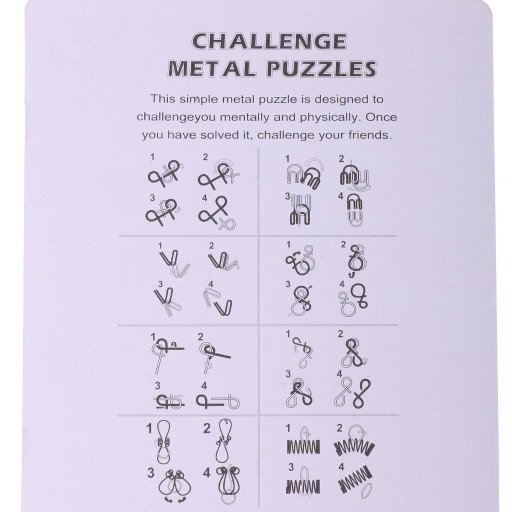 Przyjdź z 8 zestawami różnych pierścieni puzzli o różnym poziomie trudności