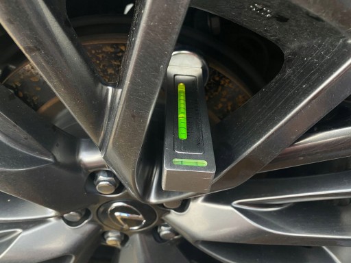 Magnetyczne narzędzie pomiarowe, umożliwia regulację w celu utrzymania prawidłowego ustawienia kół, a nawet zużycia opon