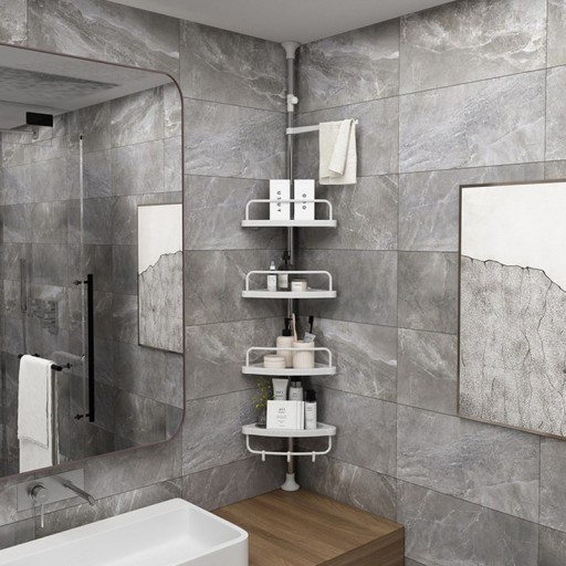 УГЛОВАЯ ПОЛКА ДЛЯ ДУША, ТЕЛЕСКОПИЧЕСКАЯ, БЕЛЫЙ КНИЖНЫЙ ШКАФ, 4 УРОВНЯ