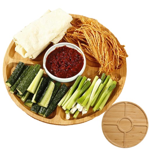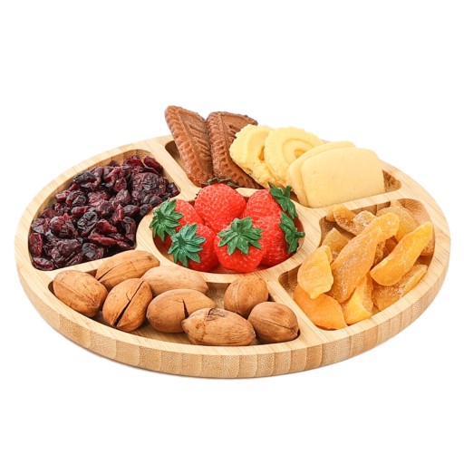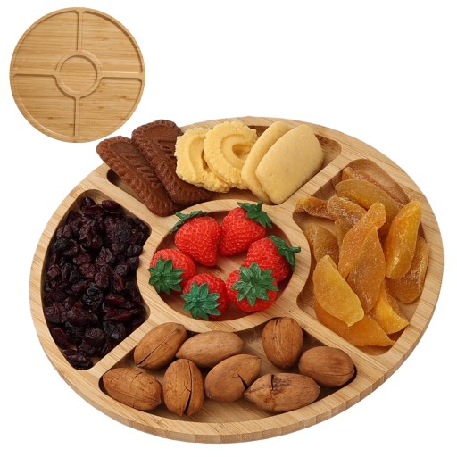 Okrągła taca bambusowa z pięcioma siatkami, drewniana taca*1