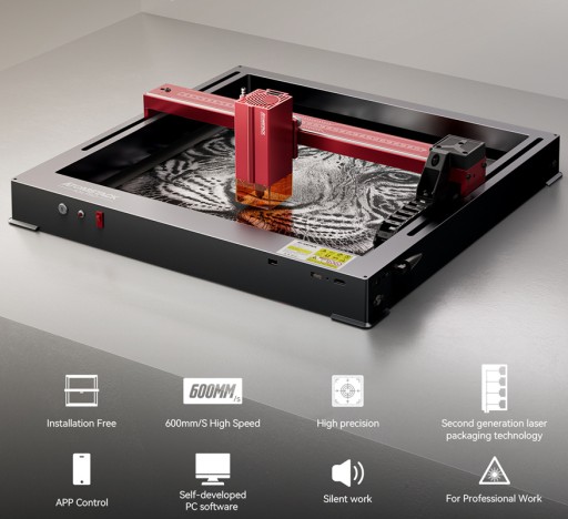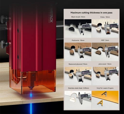 - Materiały do rzeźbienia: drewno, bambus, karton, plastik, skóra, PCB, tlenek glinu, metal galwaniczny i lakierowany bez odblasków, stal nierdzewna lustrzana 304, szkło, ceramika, tkanina bawełniana, łupek;