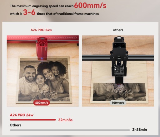Maszyna do grawerowania laserowego ATOMSTACK A24 PRO, maszyna do grawerowania laserowego CNC o szybkości 600 mm/s ze wsparciem pneumatycznym, moc wyjściowa 24 W, wycinarka laserowa do drewna/metalu/akrylu, kontrola aplikacji