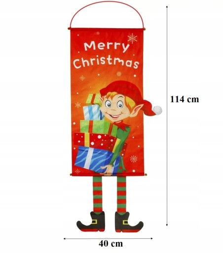 Świąteczny baner ELF doskonale sprawdzi się, jako dekoracja, która powita Twoich gości w okresie świątecznym. Doskonały pomysł na udekorowanie pomieszczenia lub witryny. Zawieszka wprowadzi świąteczny klimat w każdym miejscu.