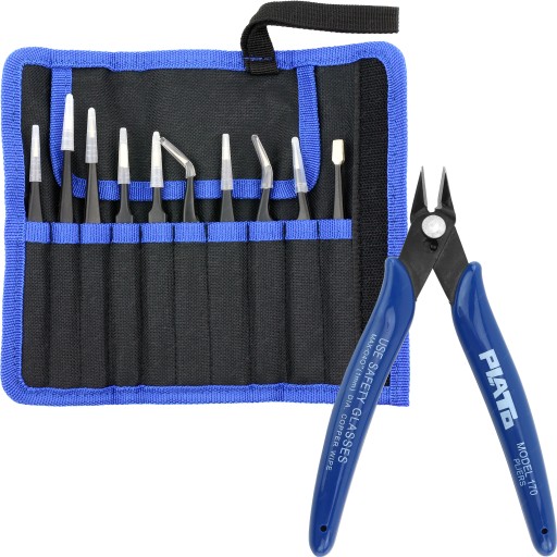 ZESTAW 10 METALOWYCH PINCET ESD + SZCZYPCE PLATO