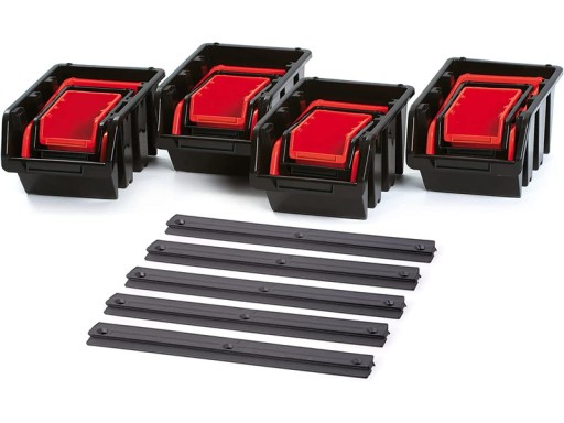 Zestaw pojemników warsztatowych marki Kistenberg. Wyprodukowane z mieszanki bardzo odpornych polimerów. Zastosowanie: dowolna oranżacja przestrzeni warsztatowej i magazynowej.