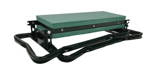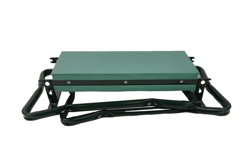 Klęcznik składa się rozkłada w łatwy sposób, dodatkowo ma praktyczną kieszonkę na narzędzia ogrodnicze.