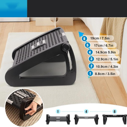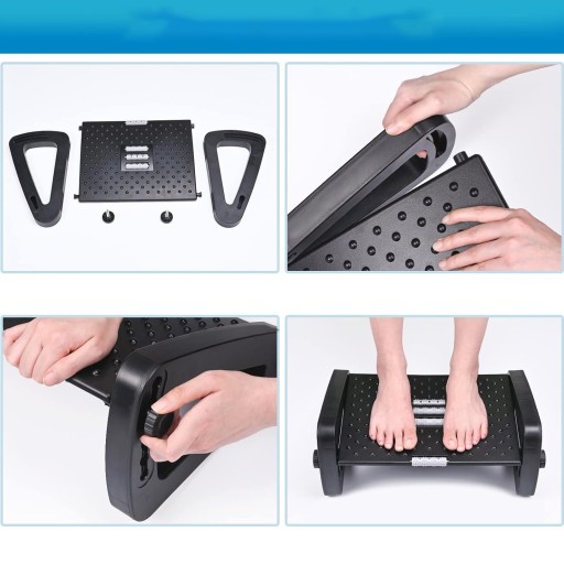 - Podnóżek ten, posiadający teksturowaną powierzchnię i dużą podwieszaną platformę pokrytą pokrętłami masującymi i rolkami, może pomóc masować i stymulować stopy oraz rozluźniać podeszwy stóp w godzinach pracy.