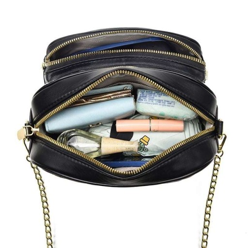 ✅ Regulowany, odpinany pasek z ekoskóry i łańcuszka.