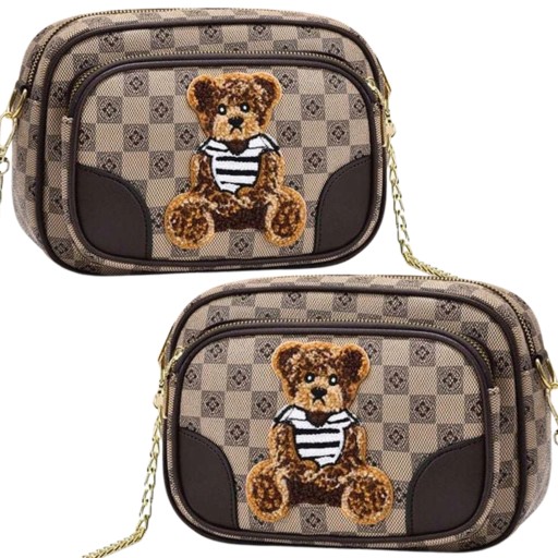 ЖЕНСКАЯ СУМКА ЧЕРЕЗ ПЛЕЧО МАЛЕНЬКИЙ ПЛЮШЕВЫЙ МИШКА КЛЕТЧАТЫЙ СВЕТЛО-КОРИЧНЕВЫЙ
